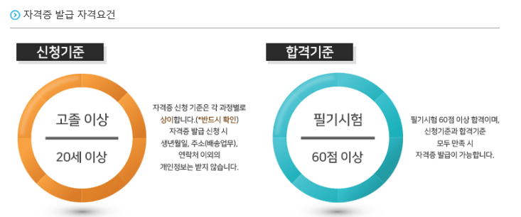 - 단, 시험에 합격을 하고 자격증 발급을 희망할 때 발급비는 본인 부담입니다.