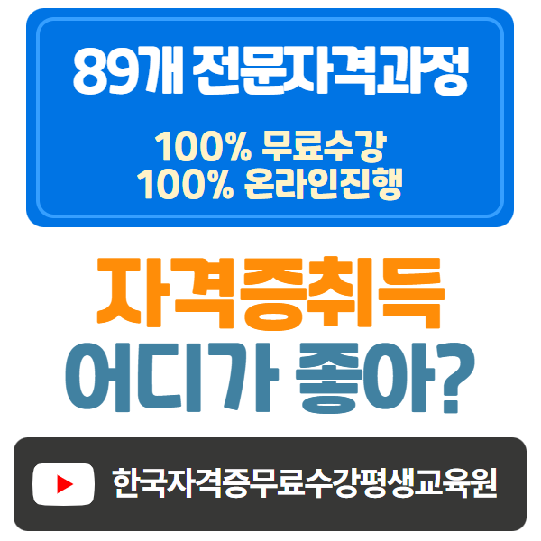 한국자격증무료수강평생교육원 상담실입니다.