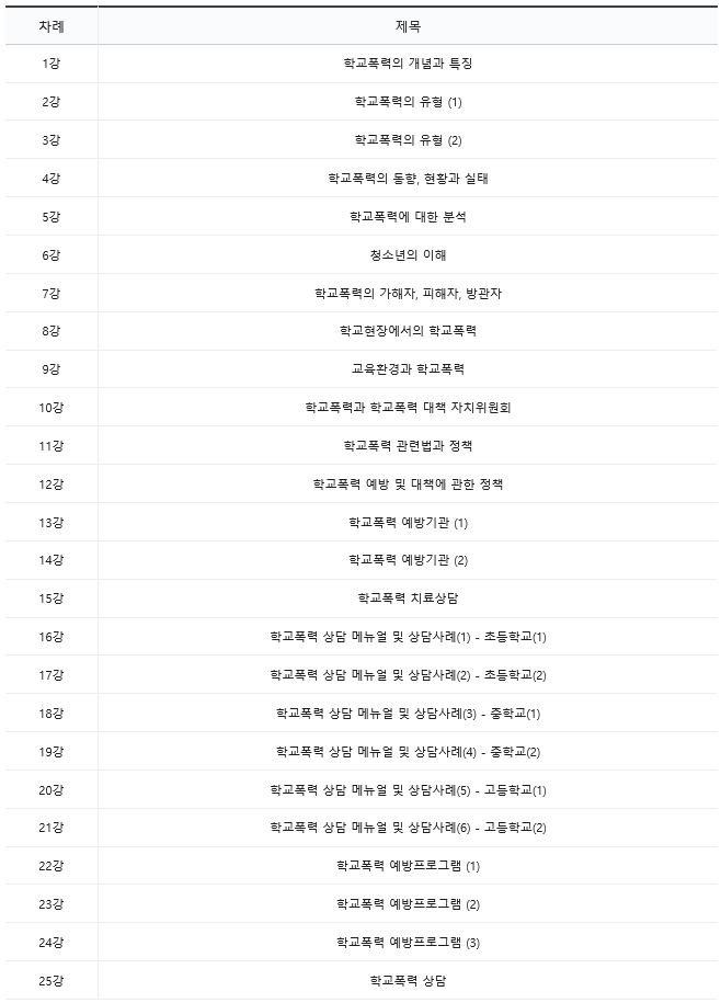 학교폭력에 대한 개념과 실태, 학교폭력의 원인, 학교폭력 예방과 대책, 학교폭력 상담, 학교폭력예방프로그램 을 배울 수 있는 학교폭력예방상담사 대해 알려줄게요.
