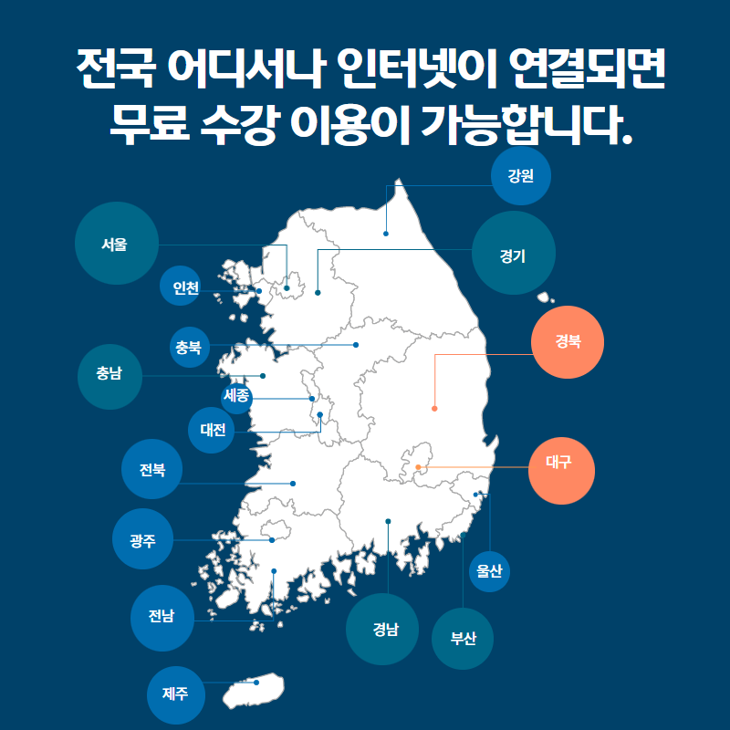 전국 어디서나 장소나 시간에 제약 없이 누구나 무료로