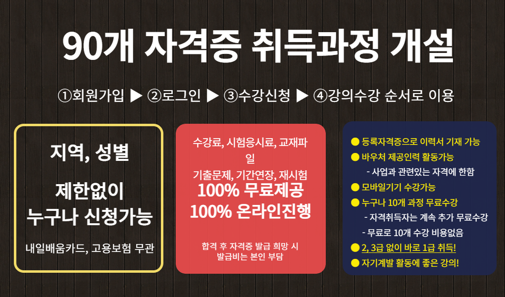 거주하시는 지역이나 성별, 나이 등에 관계없이 자격증 공부를